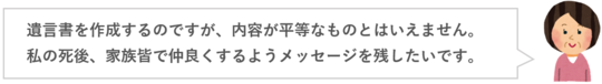 遺言者自身が相続人間で仲良く暮らすことを願っていると示すことにより、平等でない遺言の内容であっても円満な相続ができる可能性が高まります。