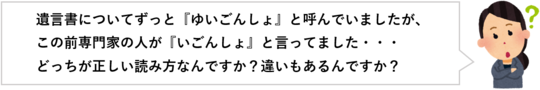 その際、遺言(ゆいごん)ではなく、遺言(いごん)と呼ぶように言われます。