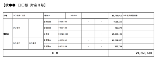 相続財産調査が完了したら、相続財産目録を作成し、各相続人に交付いたします。