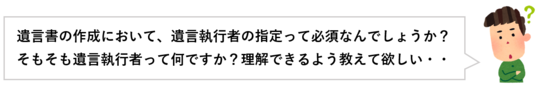 遺言書作成や遺産相続において、遺言執行者は必ずしもいる必要はありません。