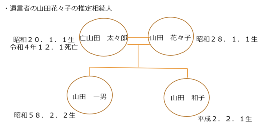 遺言者である山田花々子の夫は、遺言書作成時点で既に亡くなられています。