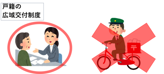 ただし、戸籍の広域交付制度を利用した請求については、①窓口での直接請求に限られ、②郵送請求は認められません。