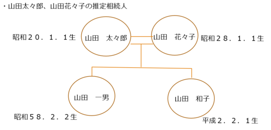 また、遺言者の遺言作成時点では、相続人は推定相続人となります。遺言者①山田太々郎、遺言者②山田花々子は、夫婦で遺言書を作成しています。