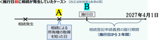 これらの場合は、改正前の相続で2027年4月1日より後の期限となります。