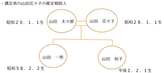 遺言書の推定相続人は、夫、長男、長女の2名です。