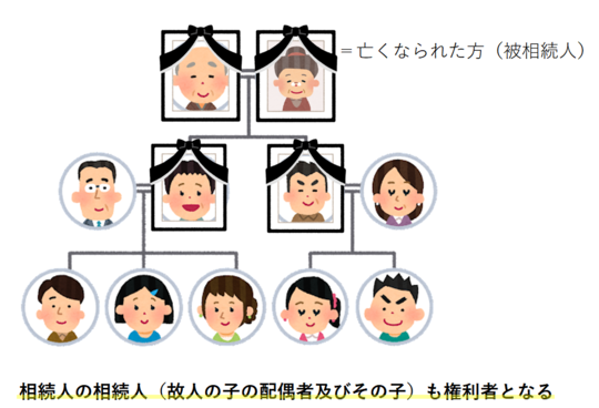 たとえば、亡くなられた方の長男が相続後に亡くなると、長男の妻・子たちも相続人となります。このように相続人の数が雪だるま式に増えていき相続関係が複雑になっていきます。