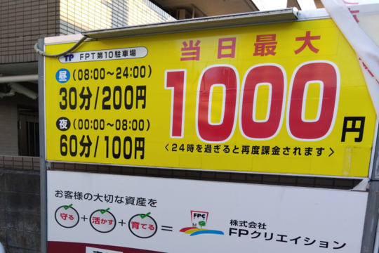 他にも徒歩5分以内に数か所コインパーキングがあります。